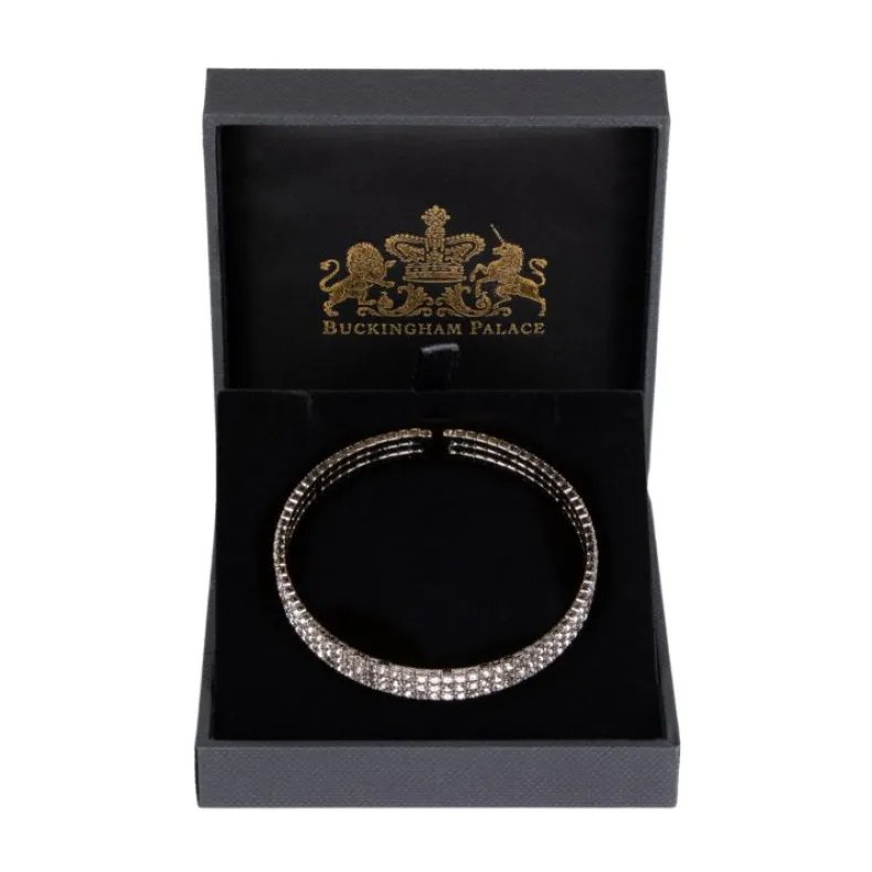 Consisting Of Three Rows Of Magnificent Crystals, This Striking Cuff Bracelet Is A True Statement Piece. Held In Rhodium Plated Base Metal, This Piece Would Make A Wonderful Gift.Flexible Bracelet.Circumference 16.5 Cm.